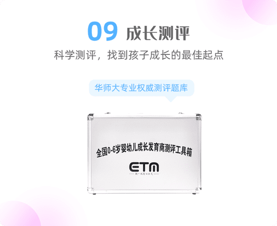 为成长测评系统量身定制的工具箱,帮助专家对孩子完成不同阶段的科学观测